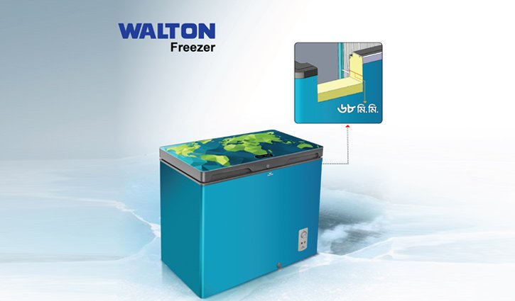 ওয়ালটন ফ্রিজ বিভাগের প্রধান নির্বাহী কর্মকর্তা প্রকৌশলী গোলাম মুর্শেদ বলেন, ওয়ালটন বাংলাদেশি মানুষের ব্র্যান্ড। সেজন্য আমরা সাশ্রয়ী দামে টেকসই ও এনার্জি এফিসিয়েন্ট পণ্য তৈরিতে বদ্ধ পরিকর। আর তাই ওয়ালটন ফ্রিজারে সর্বনিম্ন ৬৮ মিমি ইনস্যুলেশন থিকনেস ব্যবহার করা হচ্ছে। ফলে, ফ্রিজারের লোড বেশি থাকলেও ঠান্ডা হয় দ্রুত।