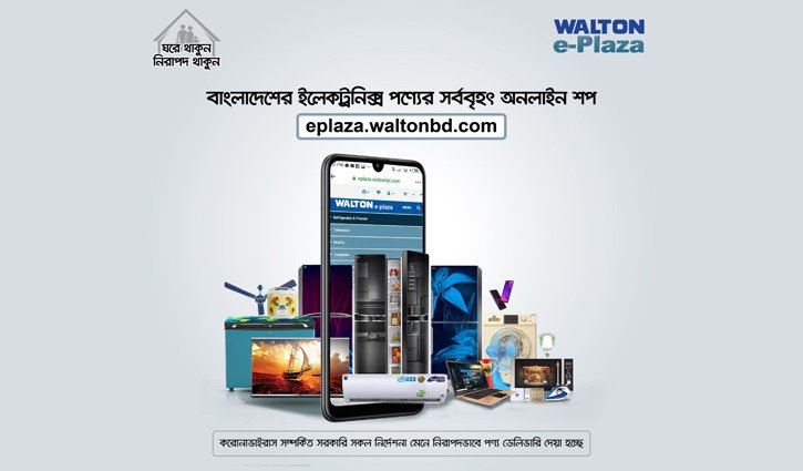 নিজস্ব প্রতিবেদক :: মহামারি করোনাভাইরাসের কারণে ঘরবন্দি মানুষ। লকডাউন দেশের বিভিন্ন এলাকা। চলছে সরকারি সাধারণ ছুটি। সীমিত আকারে শপিংমল খুললেও, নিজেদের নিরাপদ রাখতে ঘরের বাইরে যাচ্ছেন না সচেতন মানুষ। এমন অবস্থায় অনলাইনে অর্ডার নিয়ে প্রয়োজনীয় পণ্যটি ঘরেই পৌঁছে দিচ্ছে দেশের ইলেকট্রনিক্স ও প্রযুক্তিপণ্যের শীর্ষ ব্র্যান্ড ওয়ালটন। অনলাইনের ই-প্লাজা থেকে ওয়ালটন পণ্য কেনায় রয়েছে আকর্ষণীয় মূল্যছাড়। ফলে ই-প্লাজায় ওয়ালটন পণ্যের বিক্রি আগের সব রেকর্ড ছাড়িয়ে গেছে।