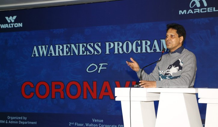 বাংলাদেশি মাল্টিন্যাশনাল ব্র্যান্ড ওয়ালটনও করোনাভাইরাস সম্পর্কে সচেতনতামূলক কর্মসূচির আয়োজন করে। বুধবার রাজধানীর বসুন্ধরায় ওয়ালটন করপোরেট অফিসে এ উপলক্ষে আয়োজিত অনুষ্ঠানে ওয়ালটন পরিবারের সদস্যদের করোনাভাইরাস প্রতিরোধে করণীয় সম্পর্কে প্রয়োজনীয় ধারণা দেয়া হয়।প্রাণঘাতী এই ভাইরাস কী, কীভাবে মানুষের মাঝে সংক্রমিত হয়, এ ভাইরাস থেকে রক্ষা পাওয়ার জন্য যেসব বিষয় মেনে চলতে হবে- এ নিয়ে গুরুত্বপূর্ণ দিক-নির্দেশনা দেন ডক্টর ইয়াজদান রেজা চৌধুরী।অনুষ্ঠানে উপস্থিত ছিলেন ওয়ালটন হাই-টেক ইন্ডাস্ট্রিজ লিমিটেডের পরিচালক এস এম মাহবুবুল আলম, নির্বাহী পরিচালক এস এম জাহিদ হাসান, উদয় হাকিম, তানভীর রহমান, সিরাজুল ইসলাম, ইউসুফ আলী প্রমুখ।