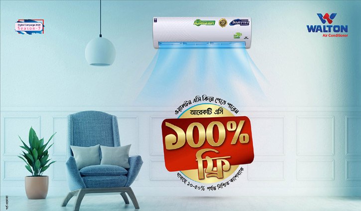 এদিকে, যেকোনো ব্র্যান্ডের পুরনো এসি বদলে ২৫ শতাংশ ডিসকাউন্টে কেনা যাচ্ছে ওয়ালটনের নতুন এসি। এছাড়া, মাত্র ৪ হাজার ৯০০ টাকা ডাউনপেমেন্টে এসি দিচ্ছে ওয়ালটন। রয়েছে ৩৬ মাসের সহজ কিস্তিসহ জিরো ইন্টারেস্টে ১২ মাসের ইএমআই সুবিধা। তবে এক্সচেঞ্জ এবং কিস্তি সুবিধায় এসি কিনলে ডিজিটাল ক্যাম্পেইনের সুবিধা মিলবে না।