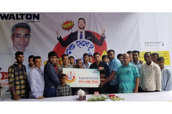 শিল্পী আক্তার গত ২ আগস্ট বাজিতপুর উপজেলার পিরিজপুর বাসস্ট্যান্ড সংলগ্ন ওয়ালটনের পরিবেশক শোরুম ‘উদয়ন ইলেকট্রনিক্স ও সোস্যাল মার্কেটিং’ থেকে ১৭ সিএফটির একটি ফ্রিজ কেনেন। এরপর ডিজিটাল রেজিস্ট্রেশন করলে তার মোবাইলে ১০ লাখ টাকা পাওয়ার মেসেজ যায়।
