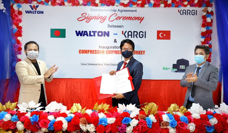 মঙ্গলবার (৭ জুলাই) রাজধানীতে ওয়ালটন করপোরেট অফিসে আয়োজিত এক ভার্চুয়াল কনফারেন্সে আনুষ্ঠানিকভাবে তুরস্কে কম্প্রেসার রপ্তানির প্রথম শিপমেন্টের উদ্বোধন করেন বাণিজ্যমন্ত্রী টিপু মুনশি। সে সময় ওয়ালটন ও কার্গি’র মধ্যে ডিস্ট্রিবিউটরশিপ বিজনেস চুক্তি হয়। চুক্তিতে স্বাক্ষর করেন ওয়ালটনের ইন্টারন্যাশনাল বিজনেস ইউনিটের প্রেসিডেন্ট এডওয়ার্ড কিম এবং কার্গি’র ব্যবস্থাপনা পরিচালক এমিন কার্গি।