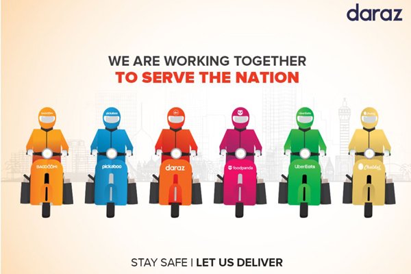 স্টে সেফ, লেট আস ডেলিভার (নিরাপদে থাকুন, ডেলিভারি আমরাই করছি)- এই মূলমন্ত্রে দেশের সঙ্কটপূর্ণ অবস্থায় গ্রাহকরা যাতে সহজেই নিত্য প্রয়োজনীয় জিনিস যেমন- চাল, ডাল, আটা, ময়দা, নুডুলস, পাস্তা, সাবান, হ্যান্ডওয়াশ, স্যানিটাইজার, চিনি, চা, ইত্যাদি আনলাইনে কিনতে পারেন, সেই লক্ষ্যে কাজ করছে ই-কমার্স প্রতিষ্ঠান দারাজ এবং স্বাস্থ্যসম্মতভাবে তা ঢাকাসহ ৩০টি জেলায় ডেলিভারিও করছে।