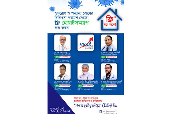 হৃদরোগ ও অন্যান্য রোগের ফ্রি চিকিৎসা পরামর্শ সেবা পেতে সাওল-এর বিশেষজ্ঞ ডাক্তারদের মধ্যে থেকে যেকোনো একজনকে হোয়াটসঅ্যাপ কল করে এই সেবা পাওয়া যাবে। ইতোমধ্যে গত ৭ দিন ধরে সারা দেশ থেকে অসংখ্য মানুষ তাদের এই ফ্রি চিকিৎসা পরামর্শ সেবা গ্রহণ করেছেন।