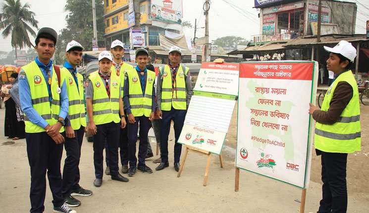 নিজস্ব প্রতিবেদক :: একটি সুস্থ ও সুন্দর দেশ গড়ার লক্ষ্যে ঢাকার পঁচিশটি (২৫) গুরুত্বপূর্ণ জায়গায় পরিচছন্নতার সচেতনতা সৃষ্টিতে কাজ করেছে “বাংলাদেশ স্কাউটস” ও “ডেটল হারপিক পরিচ্ছন্ন বাংলাদেশ”। এসময় বাংলাদেশ স্কাউটস-এর প্রায় আড়াই হাজার ছাত্র-ছাত্রী এই সচেতনতামূলক ক্যাম্পেইনে অংশগ্রহণ করে। এরই ধারাবাহিকতায় এবার চাঁদপুর জেলার হাজীগঞ্জ এবং বাকিলা উপজেলায় অনুষ্ঠিত হলো “পরিচ্ছন্নতার অঙ্গীকার” ক্যাম্পেইন। আজ শুক্রবার (৩১ জানুয়ারি) হাজীগঞ্জ বাজার ও বাকিলা বাজারে এই পরিচ্ছন্নতার কার্যক্রম শুরু হয়। এই ক্যাম্পেইনের উদ্বোধন করেন ঢাকা উত্তর সিটি কর্পোরেশনের আঞ্চলিক নির্বাহী কর্মকর্তা এবং বাংলাদেশ স্কাউটস-এর (সমাজ উন্নয়ন ও স্বাস্থ্য) বিভাগের জাতীয় উপ কমিশনার মোঃ হেমায়েত হোসেন। মাত্র তিন (৩) ঘন্টা পরিচ্ছন্নতার এই কার্যক্রমে হাজীগঞ্জ এবং বাকিলা উপজেলার প্রায় দুই হাজার (২০০০) জন মানুষ দেশকে পরিচ্ছন্ন রাখার বিষয়ে “পরিচ্ছন্নতার অঙ্গীকার” করানো হয়।