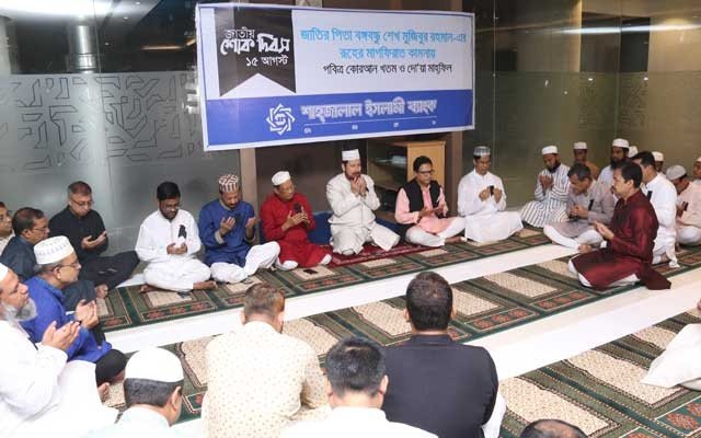 শাহ্জালাল ইসলামী ব্যাংক করপোরেট প্রধান কার্যালয়ে জাতির জনক বঙ্গবন্ধু শেখ মুজিবুর রহমানের ৪৪তম শাহাদাৎ বার্ষিকী উপলক্ষ্যে দোয়া মাহফিলের করে।