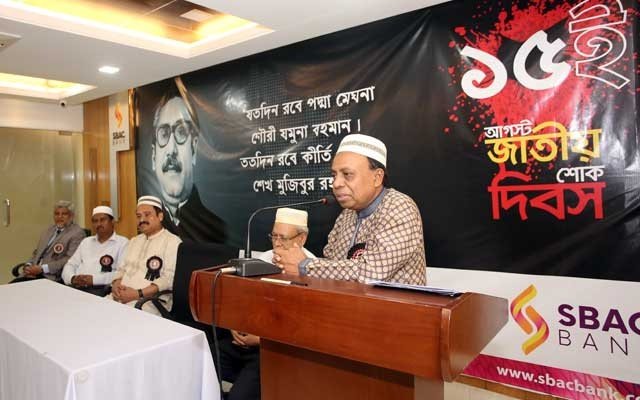 সাউথ বাংলা এগ্রিকালচার অ্যান্ড কমার্স (এসবিএসি) ব্যাংক বুধবার প্রধান কার্যালয়ে জাতীয় শোক দিবসে বঙ্গবন্ধু শেখ মুজিবুর রহমানের জীবন ও কর্ম শীর্ষক আলোচনা সভা ও দোয়া অনুষ্ঠানের আয়োজন করে। এতে প্রধান অতিথি ছিলেন ব্যাংকের ব্যবস্থাপনা পরিচালক গোলাম ফারুক।