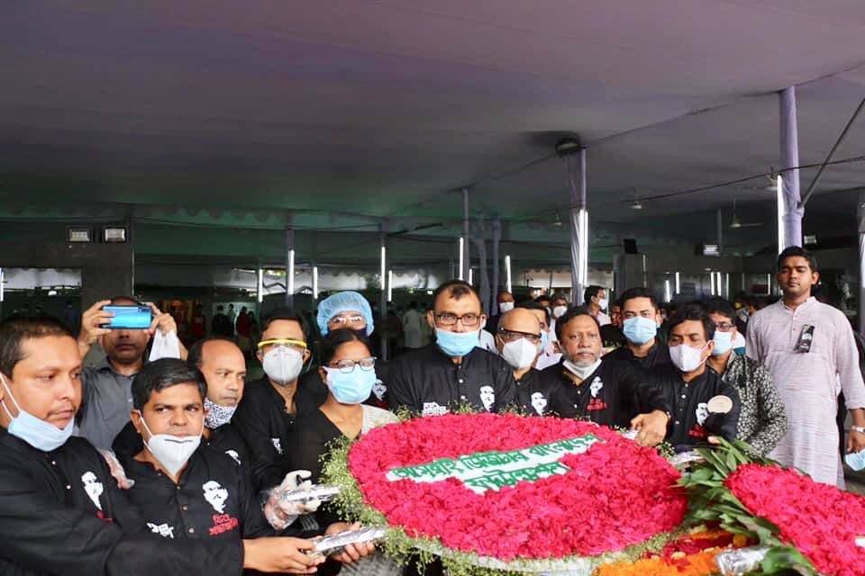 ‘আমরাই ডিজিটাল বাংলাদেশ ফাউন্ডেশনের’ সভাপতি ড. শাহজাহান মাহমুদের নেতৃতে স্বাস্থ্যবিধি অনুসরণ করে, ধানমন্ডির ৩২ নম্বর সড়কে বঙ্গবন্ধুর প্রতিকৃতিতে পুষ্পস্তবক অর্পণ করেন। এসময়ে আরোও উপস্থিত ছিলেন ‘আমরাই ডিজিটাল বাংলাদেশ ফাউন্ডেশনের’ সহ সভাপতি রুবিনা মিরা এমপি, প্রফেসর ড. সাজ্জাদ হোসেন, সাধারন সম্পাদক লিয়াকত হোসাইন, যুগ্ম সাধারন সম্পাদক মোঃ হাবিবুল্লাহ তুহিন ও আছিয়া নীলা।