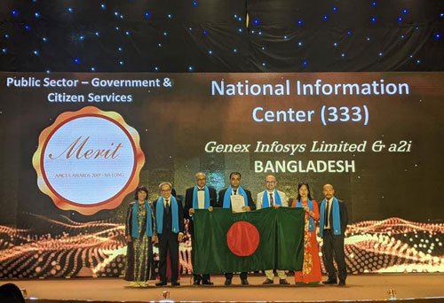 নিজস্ব প্রতিবেদক :: হেল্পলাইন ‘৩৩৩’ এর জন্য এশিয়ার মর্যাদাপূর্ণ পদক ‘দ্যা এশিয়া প্যাসিফিক আইসিটি আ্যলায়েন্স (এপিকটা)-২০১৯’ পেয়েছে দেশের শীর্ষ প্রযুক্তি প্রতিষ্ঠান জেনেক্স ইনফোসিস এবং তথ্য ও যোগাযোগ প্রযুক্তি মন্ত্রণালয়ের এটুআই প্রকল্প।