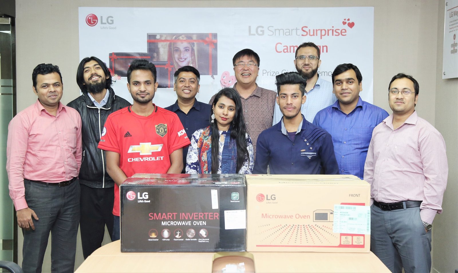 নিজস্ব প্রতিবেদক :: রাজধানী ঢাকার গুলশানে ৩০ অক্টোবর এলজি বাংলাদেশ হেড অফিসে অনুষ্ঠিত স্মার্ট সারপ্রাইজ ক্যাম্পেইনের পুরস্কার বিতরনী অনুষ্ঠান। গত ১৯ অক্টোবর থেকে ২৫ অক্টোবর সাত দিনব্যাপী সামাজিক যোগাযোগমাধ্যম ফেসবুকে এই ক্যাম্পেইন চলে। এলজি বাংলাদেশ পেজের ৮ লাখেরও বেশি ফলোয়ারকে জিজ্ঞেস করা হয় তারা কিভাবে তাদের প্রিয়জনকে সারপ্রাইজ দিতে পারে। ১৩ হাজারেরও বেশি কমেন্টের মধ্য থেকে ফেসবুক ব্যবহারকারীদের ভোটে তিনজনকে বিজয়ী নির্বাচিত করা হয়।