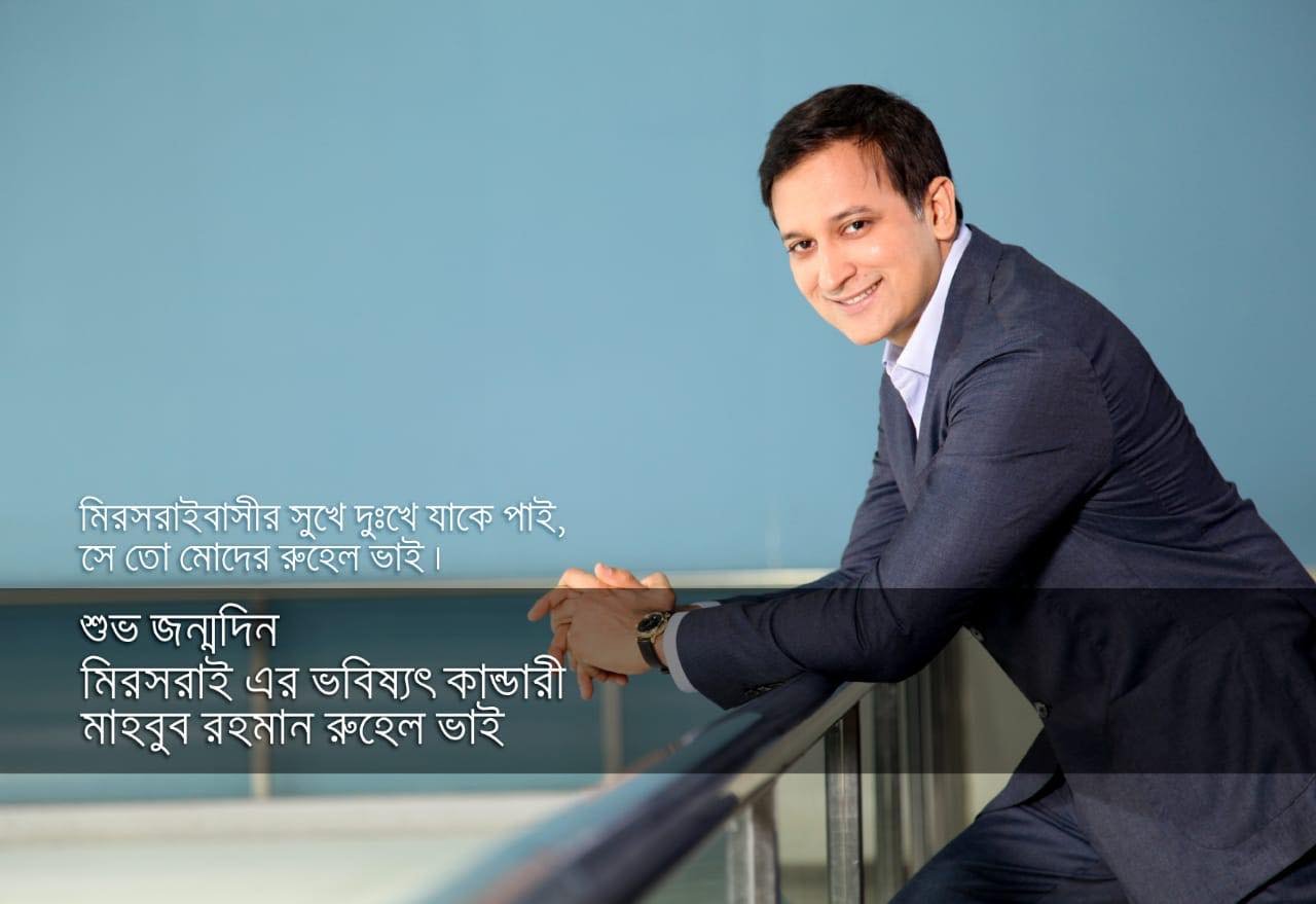 নিজস্ব প্রতিবেদক ::  ৮ জুলাই চট্টগ্রাম এর আওয়ামী লীগ নেতা,শিল্পোদ্যোক্তা মাহবুব রহমান রুহেল এর ৫০ তম জন্মদিনকে ঘিরে উচ্ছ্বসিত নেতাকর্মী ,ভক্ত সমর্থকরা সামাজিক যোগাযোগ মাধ্যমে মধ্যরাত হতে শুভেচ্ছা জানাতে থাকেন। হাজারো শুভাকাঙ্ক্ষী ,কর্মী সমর্থকদের লেখায় তরুণ সমাজে রুহেলএর ব্যাপক প্রভাবের চিত্র প্রতিফলিত হয়ে উঠে। কর্মী সমর্থকদের লেখায়,স্মৃতিচারণে প্রত্যাশায় মাহবুব রহমান রুহেল এর নানান দিক উঠে আসে। উঠে আসে মিরসরাইকে ঘিরে রুহেলের কর্মকান্ড,স্বপ্ন ,ভবিষ্যত কর্মপরিকল্পনা সহ নানান দিক।