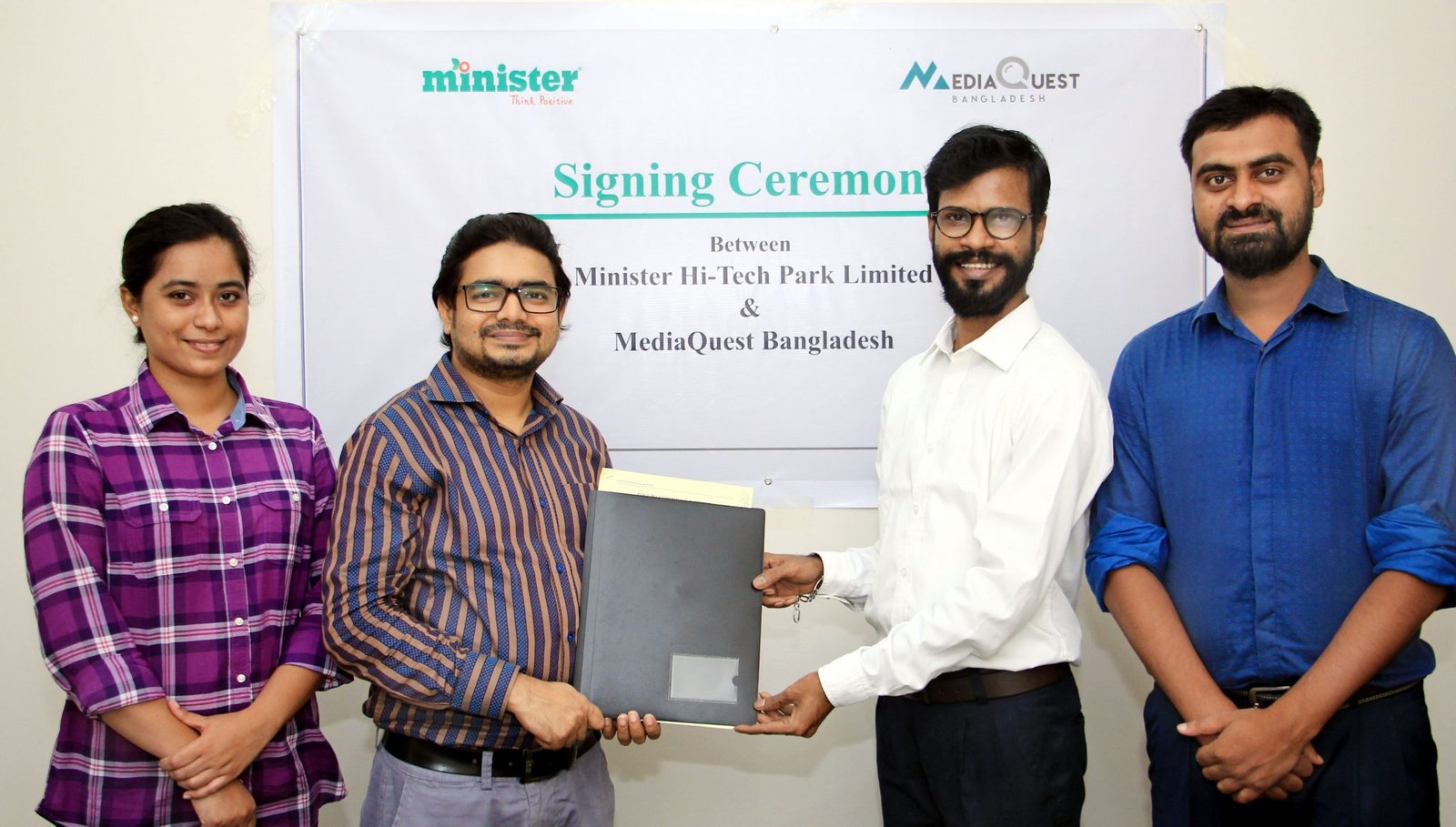 চুক্তি অনুযায়ী, মিনিস্টার হাই-টেক পার্কের সকল ধরনের জনসংযোগের দ্বায়িত্ব পালন করবে মিডিয়াকোয়েস্ট বাংলাদেশ। অনুষ্ঠানে উপস্থিত ছিলেন মিনিস্টার হাই-টেক পার্কের হেড অব ব্র্যান্ড এন্ড কমিউনিকেশন কে এম জি কিবরিয়া এবং মিডিয়াকোয়েস্ট বাংলাদেশ থেকে কোম্পানিটির ফাউন্ডিং ম্যানেজিং পার্টনার এন্ড ডিরেক্টর তারিকুল সুমন ও কো-ফাউন্ডার এন্ড ডিরেক্টর শ্রাবণ সাগর।