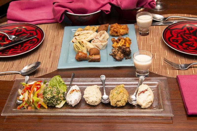 অ্যাপিটাইজার হিসেবে শুরুতেই ছিল জা’তার, চিজ এবং শাত্তাহর এর লাবিনা। তারপর হামাস, ফাউল বি জেইত, হারা সালাদ যা একরকমের ঝাল মসলাযুক্ত জর্ডানিয়ান টমেটো সালাদ। মুশখান রোল, হালুমি তৈরি হয় ভেড়ার মাংস দিয়ে। ফুলকপি ও ডিম দিয়ে তৈরি মুশাত, শর্বা – জর্ডানের বিখ্যাত স্যুপ। যেখানে চিংড়ি, চিকেন, সবজি ও জর্ডানের বিখ্যাত মসলা রয়েছে। আরও ছিল ভেড়ার মিটবল।