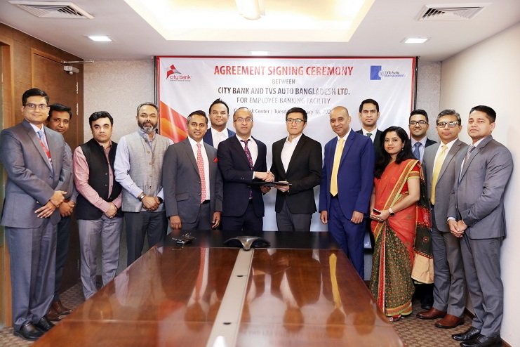 সিটি ব্যাংকের ব্যবস্থাপনা পরিচালক এবং সিইও মাসরুর আরেফিন এবং টিভিএস অটো বাংলাদেশের ব্যবস্থাপনা পরিচালক জে. একরাম নিজ নিজ প্রতিষ্ঠানের পক্ষে স্বাক্ষরিত চুক্তিটি হস্তান্তর করেন।